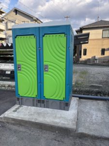 当野球練習場では、皆様が安心してご利用いただけるよう、水栓式の仮設トイレを新たに設置いたしました。